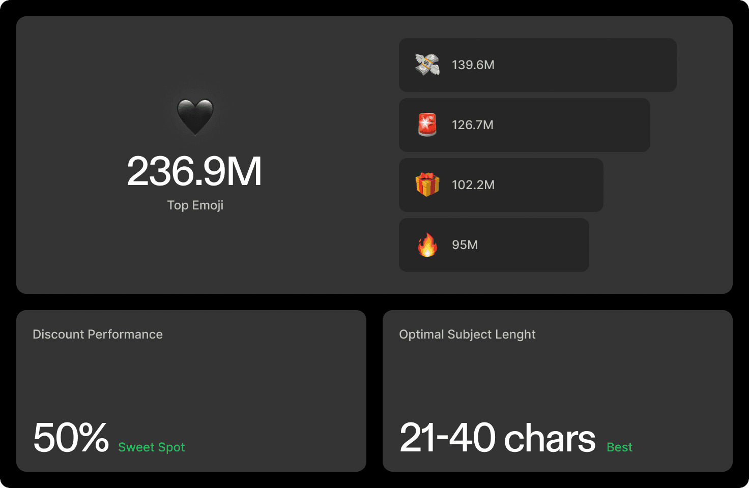 The data reveals that clarity consistently outperformed cleverness. Straightforward discount messaging combined with Black Friday branding and a single strategic emoji drove the highest volume across nearly every industry segment. For marketers planning 2026 campaigns, these patterns provide a benchmark for what resonates when competition for inbox attention peaks.