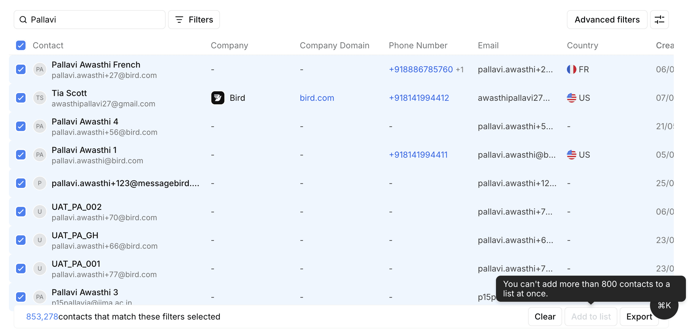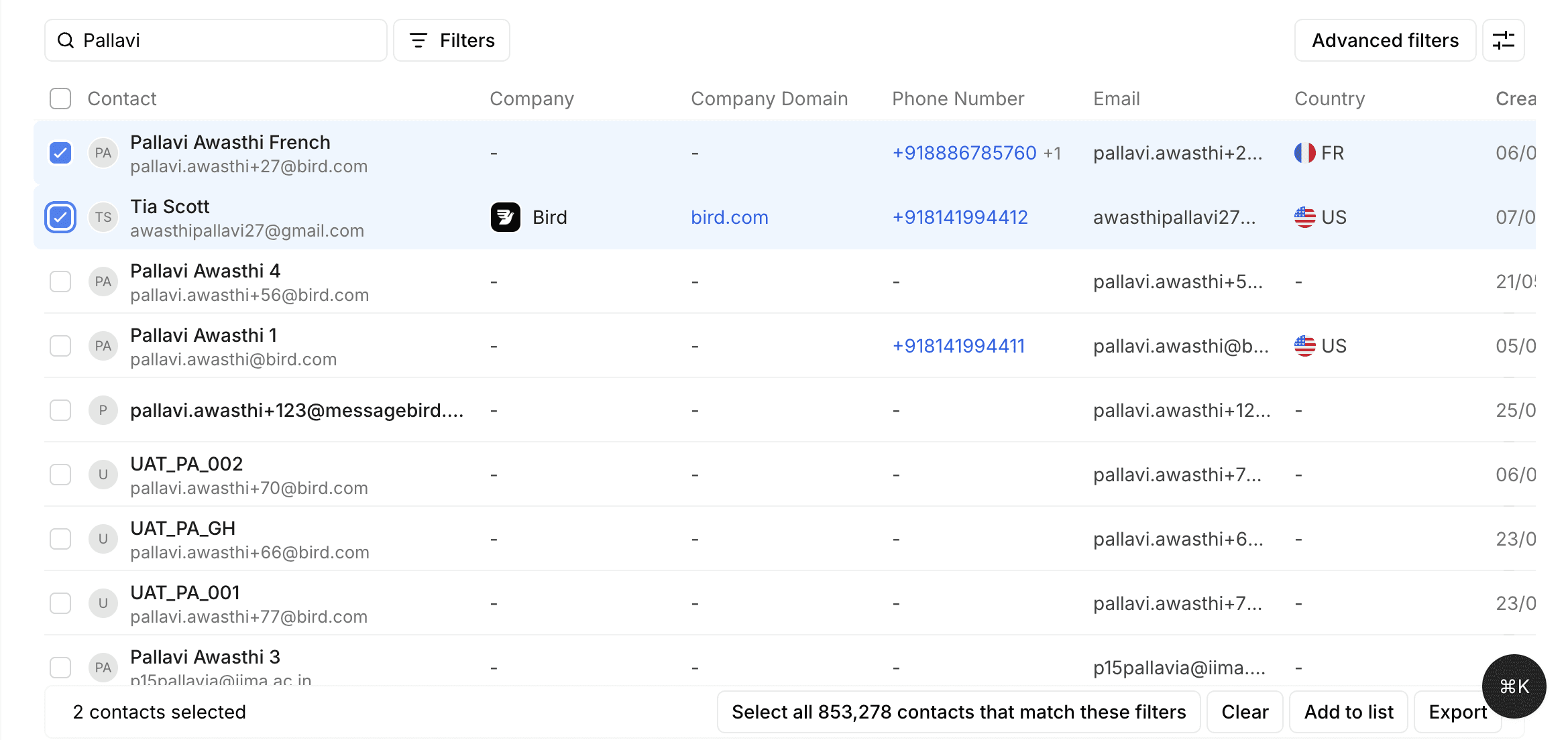 Sebuah profil kontak di Bird berisi semua data yang tersedia tentang kontak. Ini membantu Anda mengelola dan meninjau semua rincian serta interaksi dengan kontak tertentu tersebut.